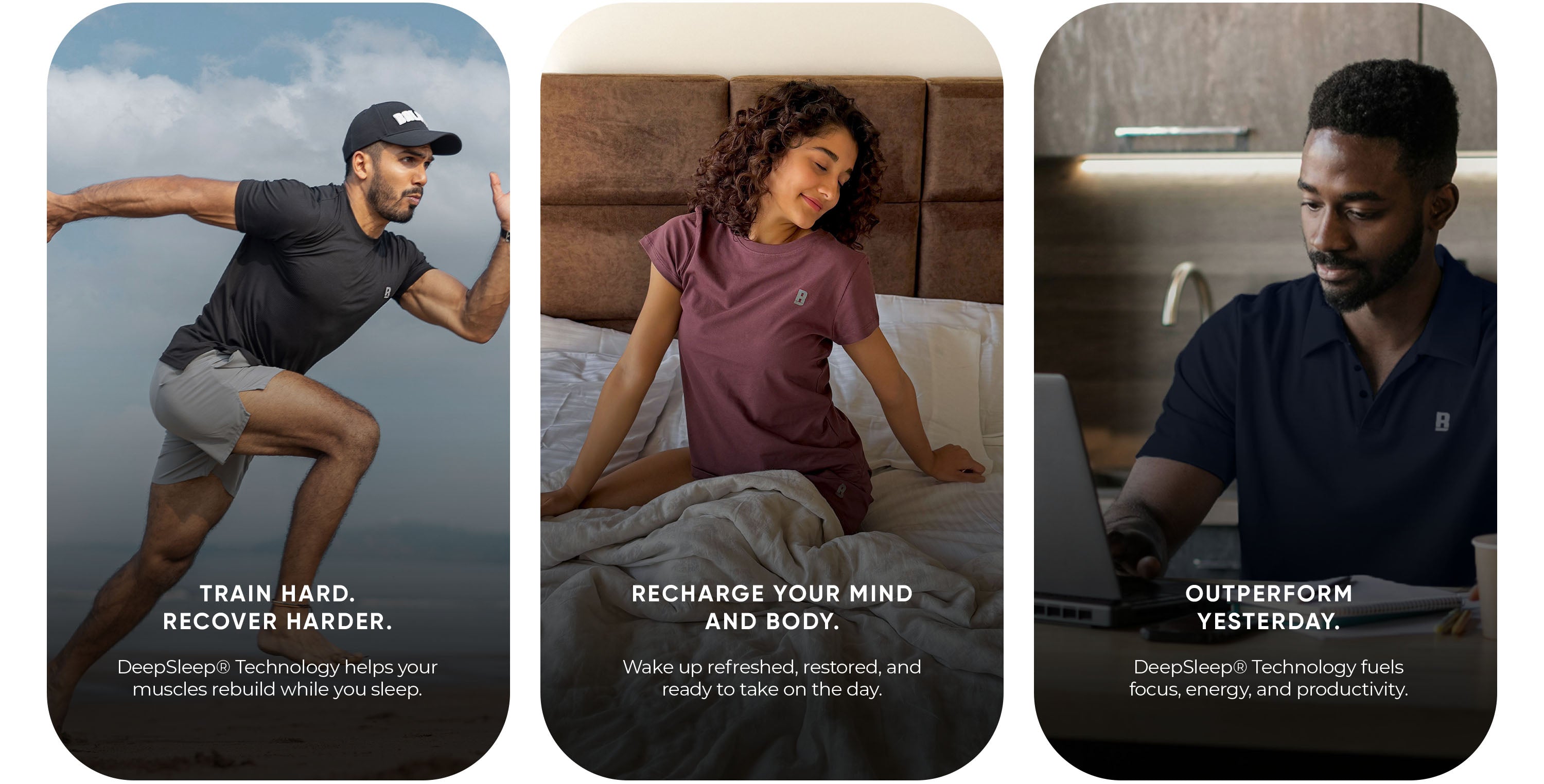 Baller Athletik sleepwear is designed with DeepSleep® Technology, which helps enhance deep and REM sleep, improve blood circulation, and naturally boost serotonin and melatonin levels, promoting better rest and relaxation.