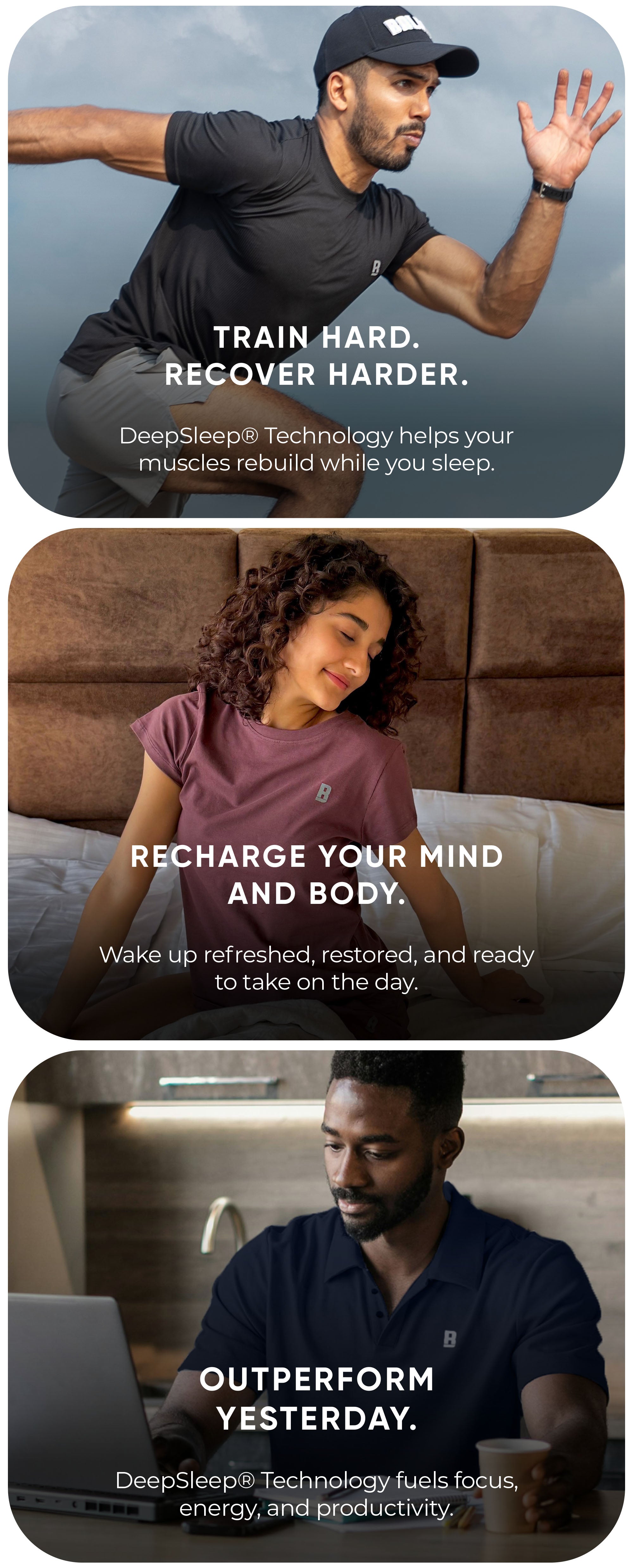 DeepSleep® Technology is designed to support faster muscle recovery, improved blood circulation, and enhanced sleep quality. It helps your body naturally achieve deeper sleep cycles, ensuring you wake up feeling well-rested and energized.