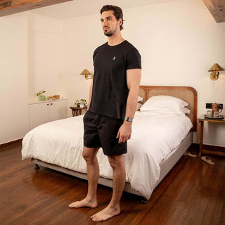 The sleepwear is made from high-quality, breathable, and moisture-wicking fabric that ensures maximum comfort and relaxation while sleeping. It also incorporates DeepSleep® Technology, which enhances sleep quality and muscle recovery.