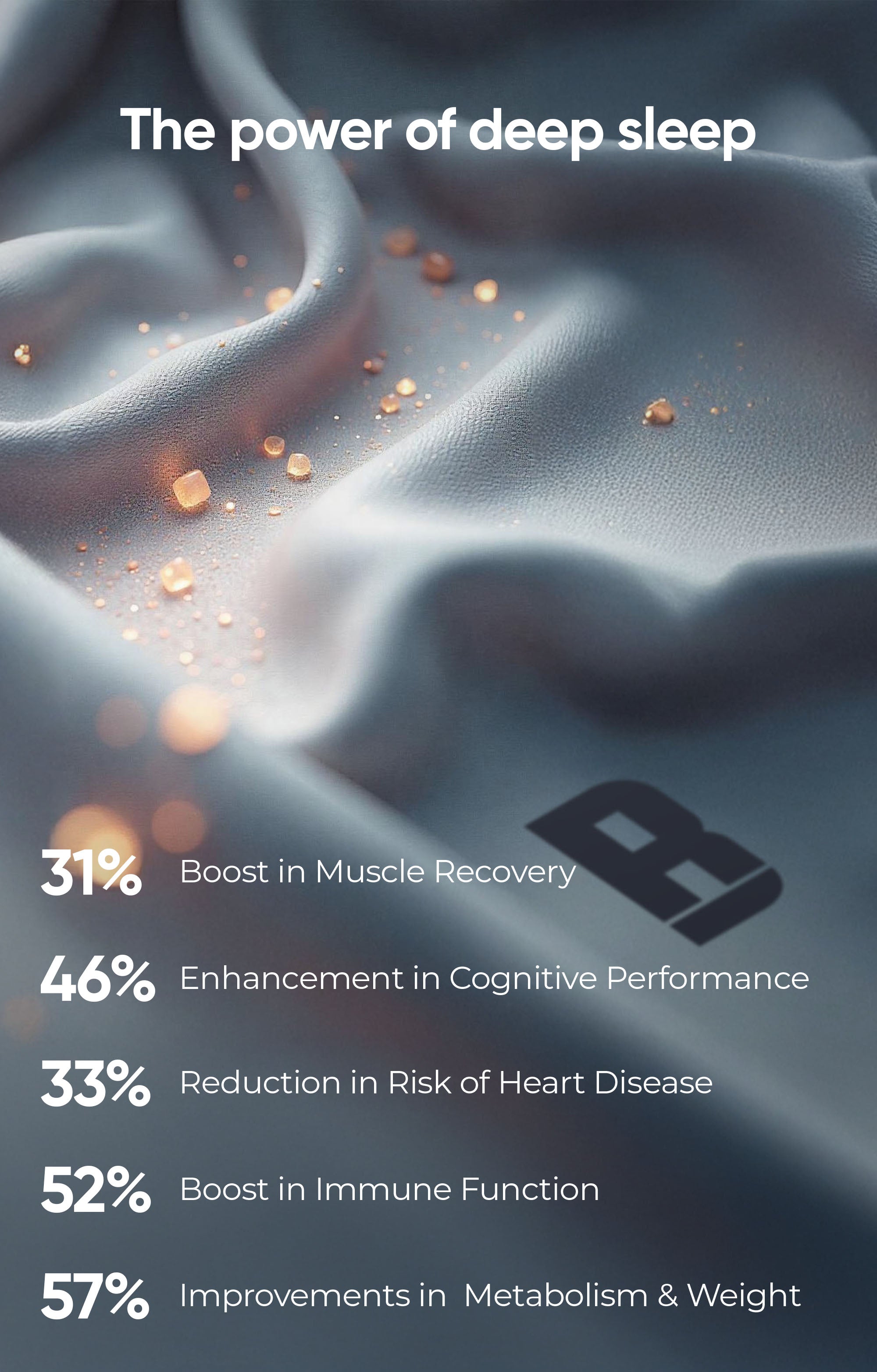 DeepSleep® Technology is designed to support faster muscle recovery, improved blood circulation, and enhanced sleep quality. It helps your body naturally achieve deeper sleep cycles, ensuring you wake up feeling well-rested and energized.